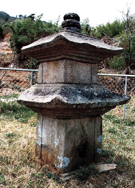 아래받침돌에는 복련(覆蓮:엎어놓은 연꽃무늬)을 둘렀고 윗받침돌에는 아래와 대칭되는 앙련(仰蓮:솟은 연꽃무늬)을 조각하였다. 가운데기둥은 가늘고 길며 중간이 부러져 있던 것을 나중에 맞추어 놓았다. 화사석과 지붕돌이 없어진 자리에는 꼭대기에 있던 머리장식만 놓여 있어서 낮은 받침위로 복발(覆鉢:엎어놓은 그릇모양장식), 보주(寶珠:연꽃봉오리모양의 장식) 등이 남아 있다.
