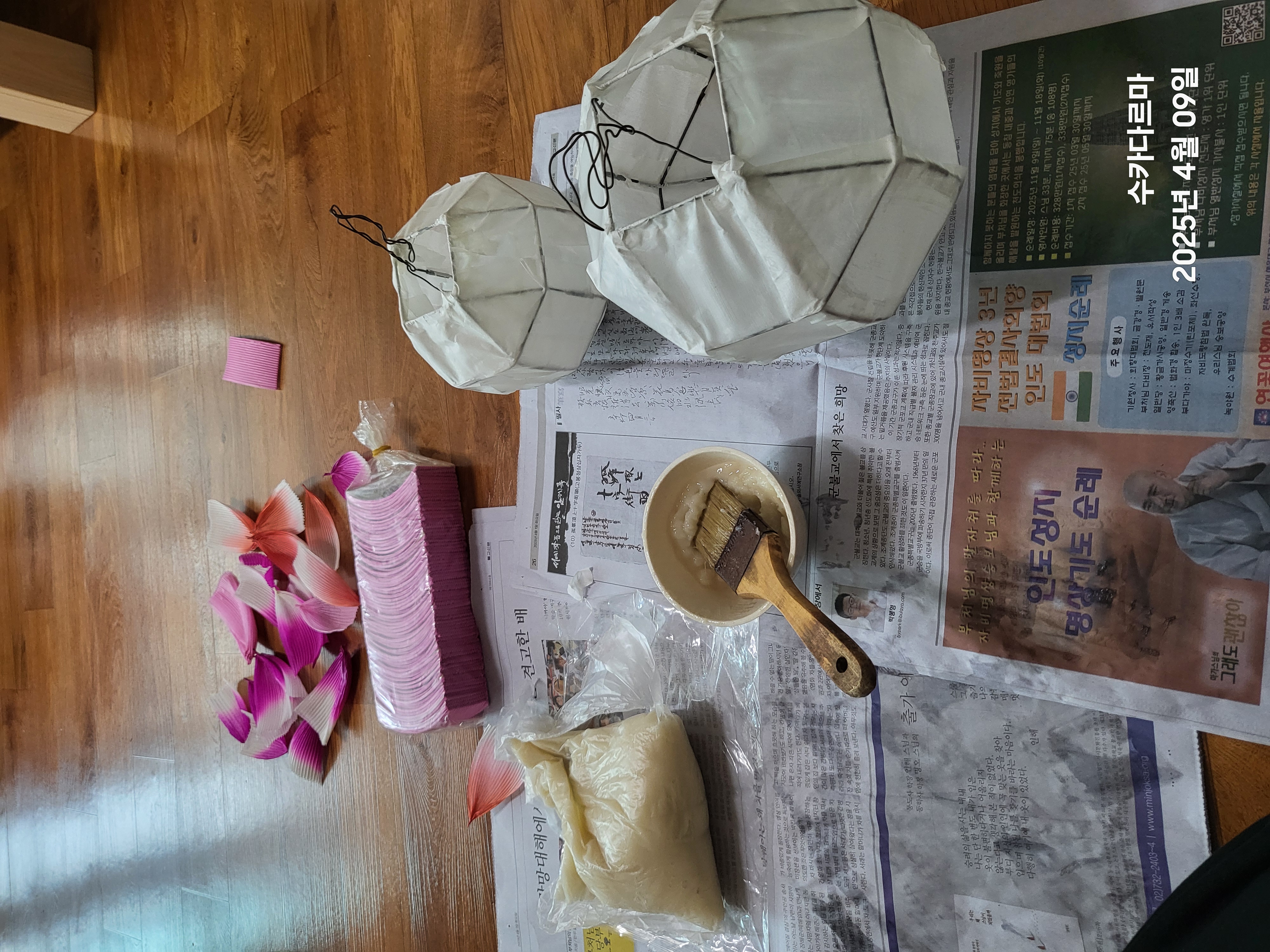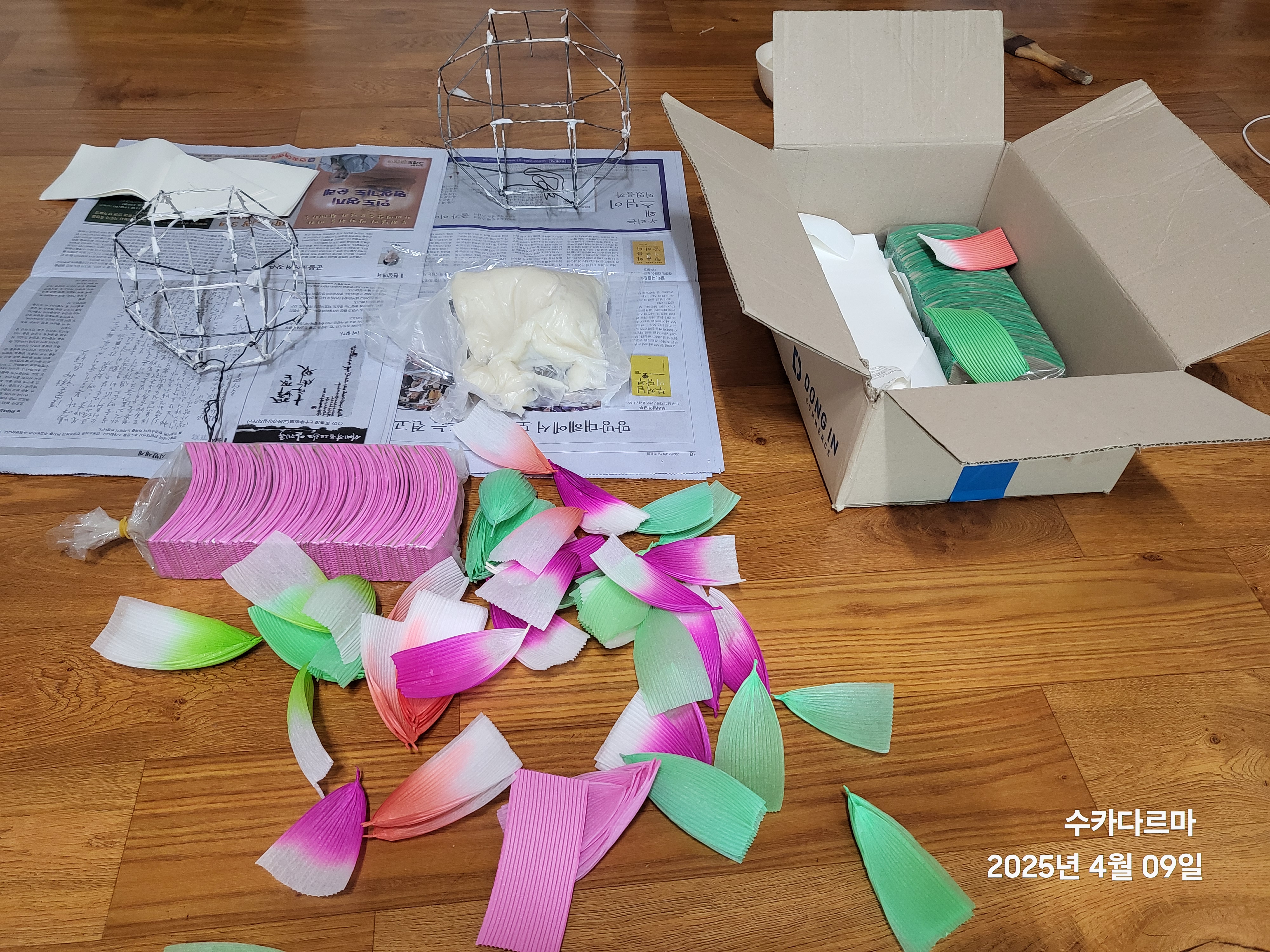🌸처음 부터 나 홀로 작업이어서 하나의 등을 완성하는데 한 시간을 훌쩍 넘긴다.