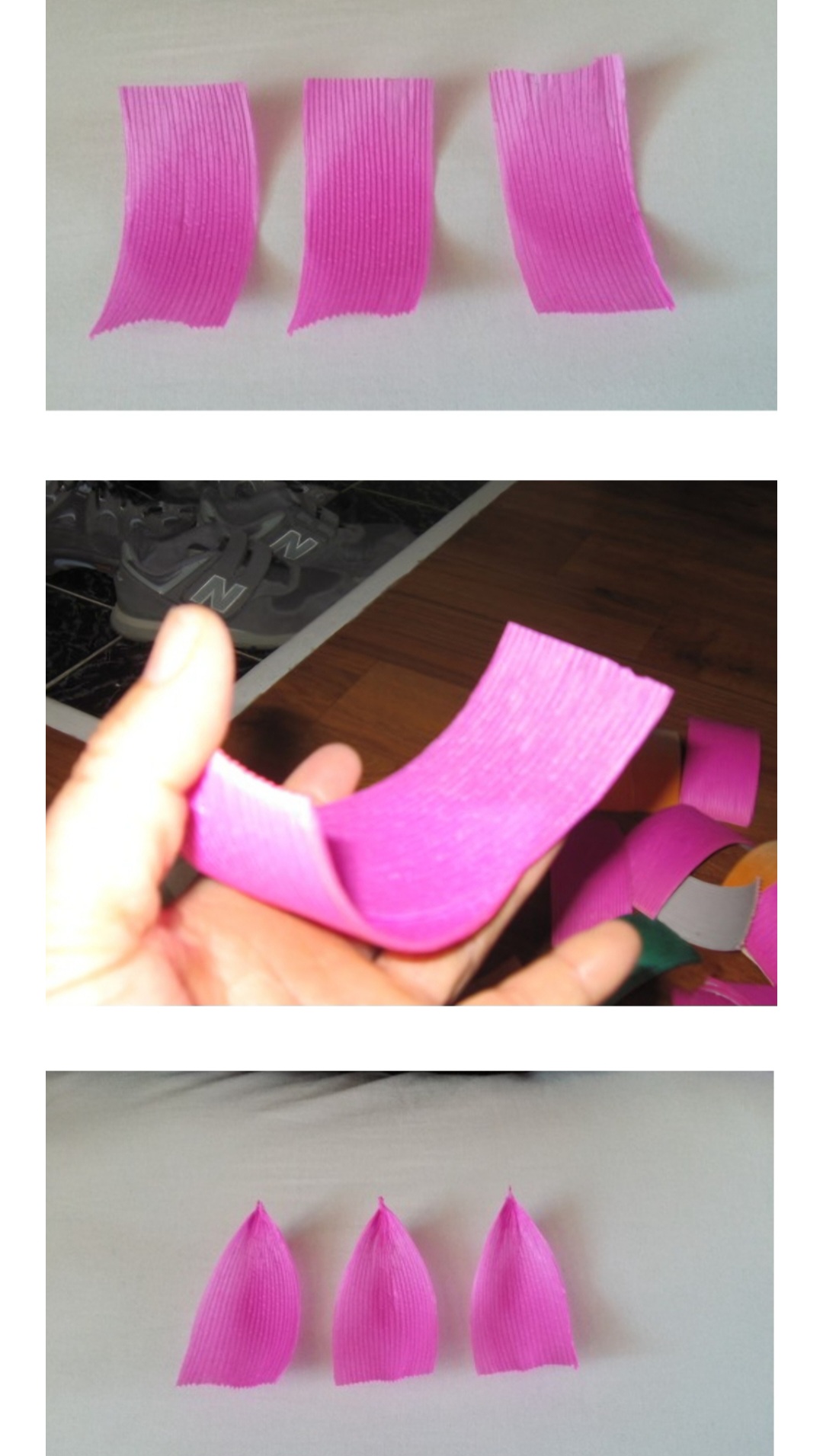 5. 연잎을 손가락 사이에 두고 만다. 완성된 연잎은 날렵한 모양이 되어야 한다.