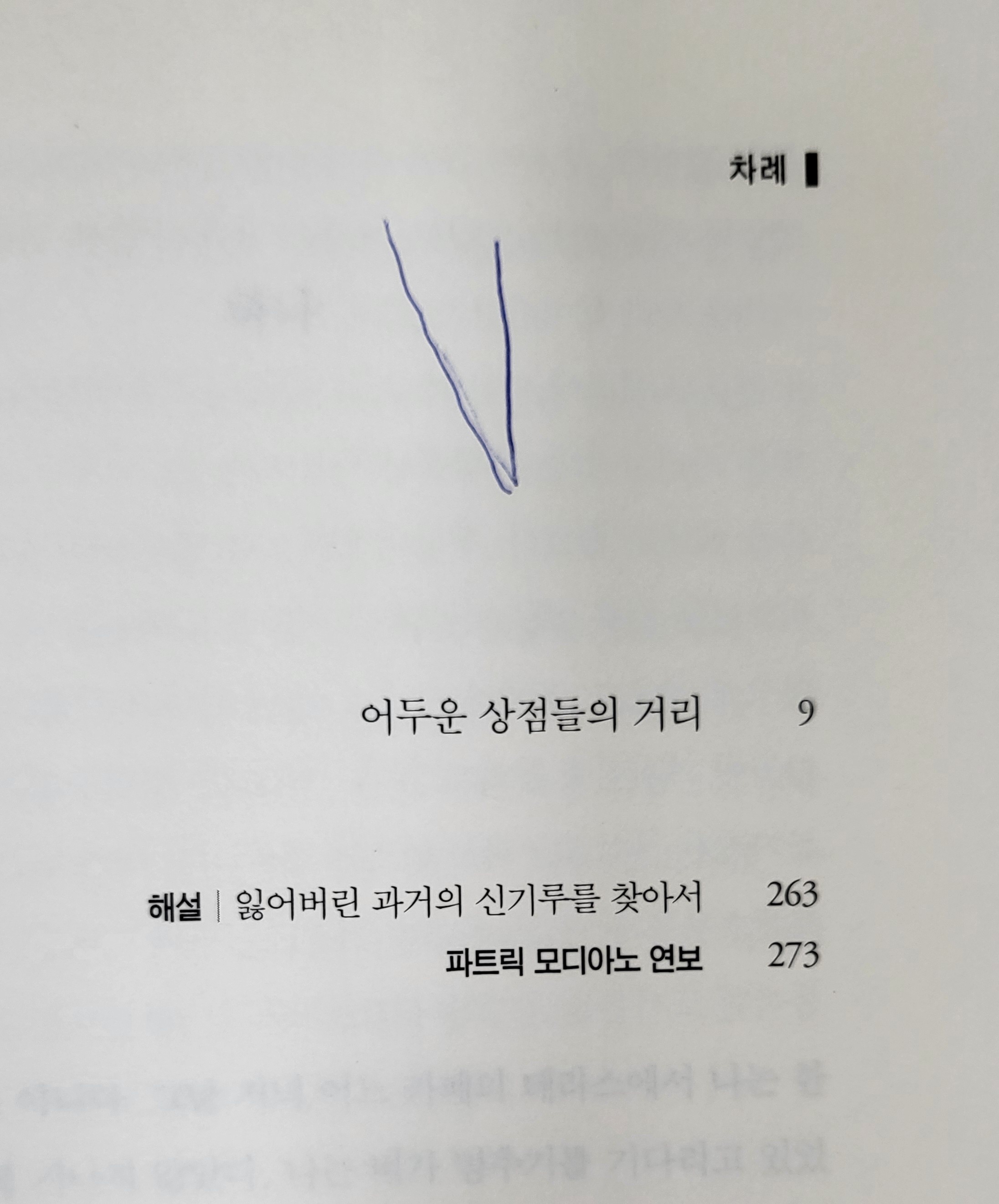 "어두운 상점들의 거리"는 기억상실증에 걸린 퇴역 탐정이 자신의 과거를 추적하는 여정을 그린 소설이다. 2차대전의 참화 속에서 태어나 과거를 상실한 세대로 자란 모디아노는 이 작품을 통해 '기억
