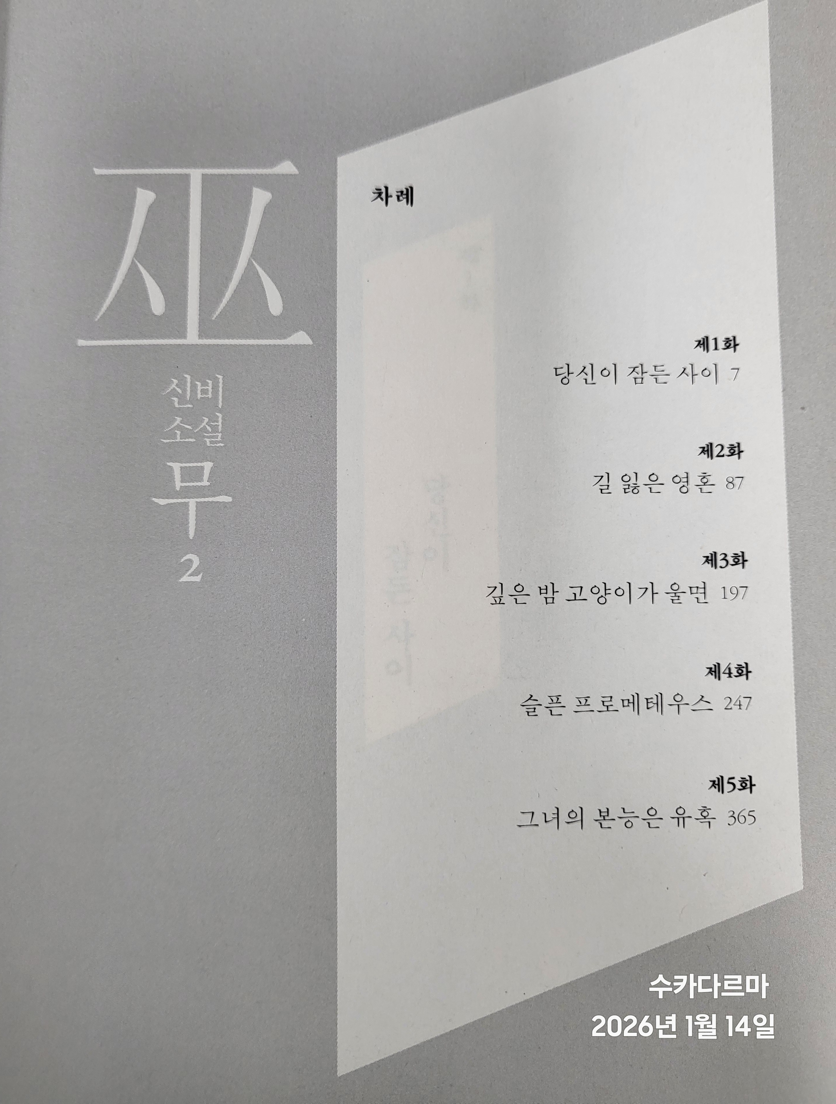 | 독서후기 (2026-8) 문성실 장편소설 신비소설 무巫 1 신이 선택한 아이 (10) | 2026.01.14 |