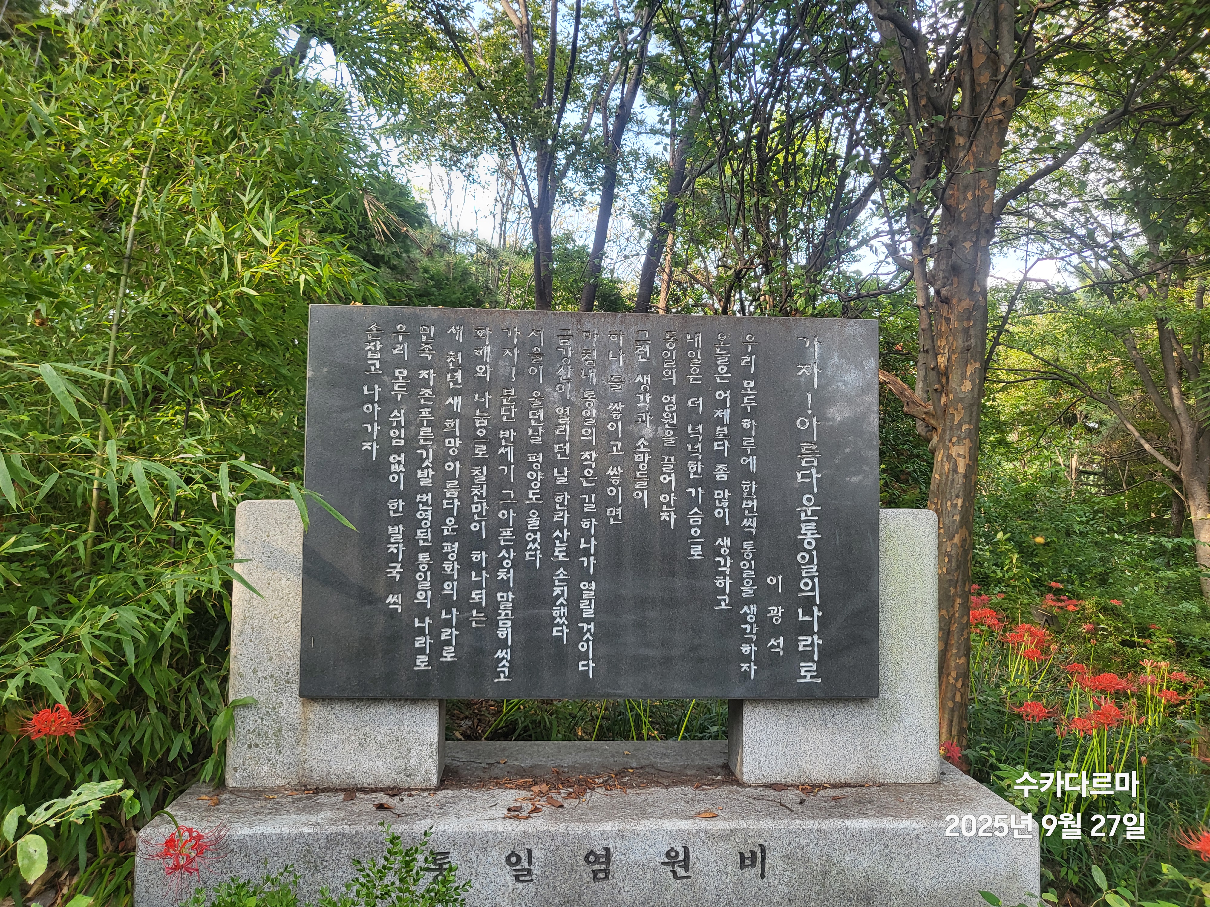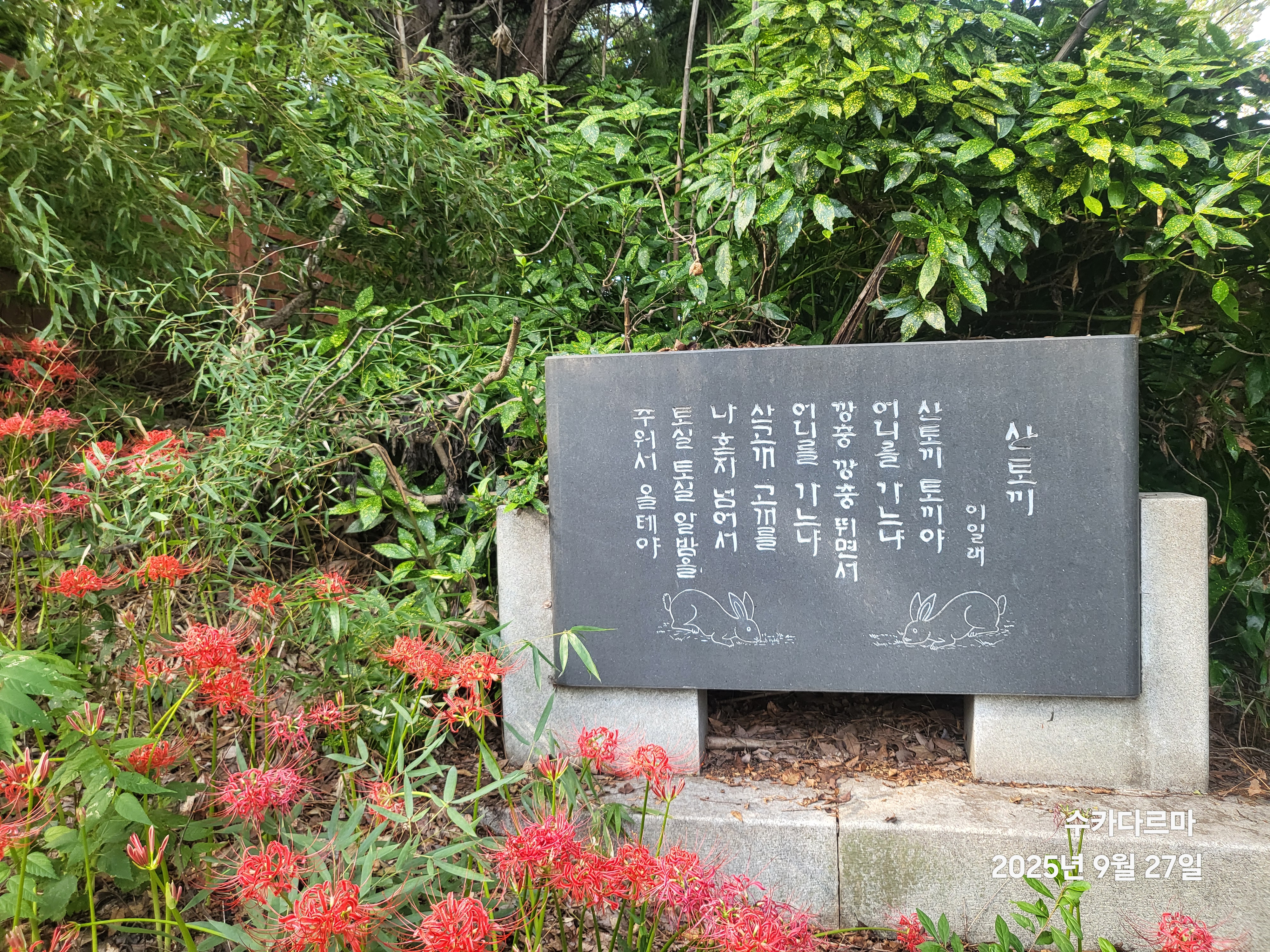 꽃무릇을 구경와서 꽃만 보고 가면 너무 아쉽다. 줄지어 선 시비를 감상하고 가야만 한다.