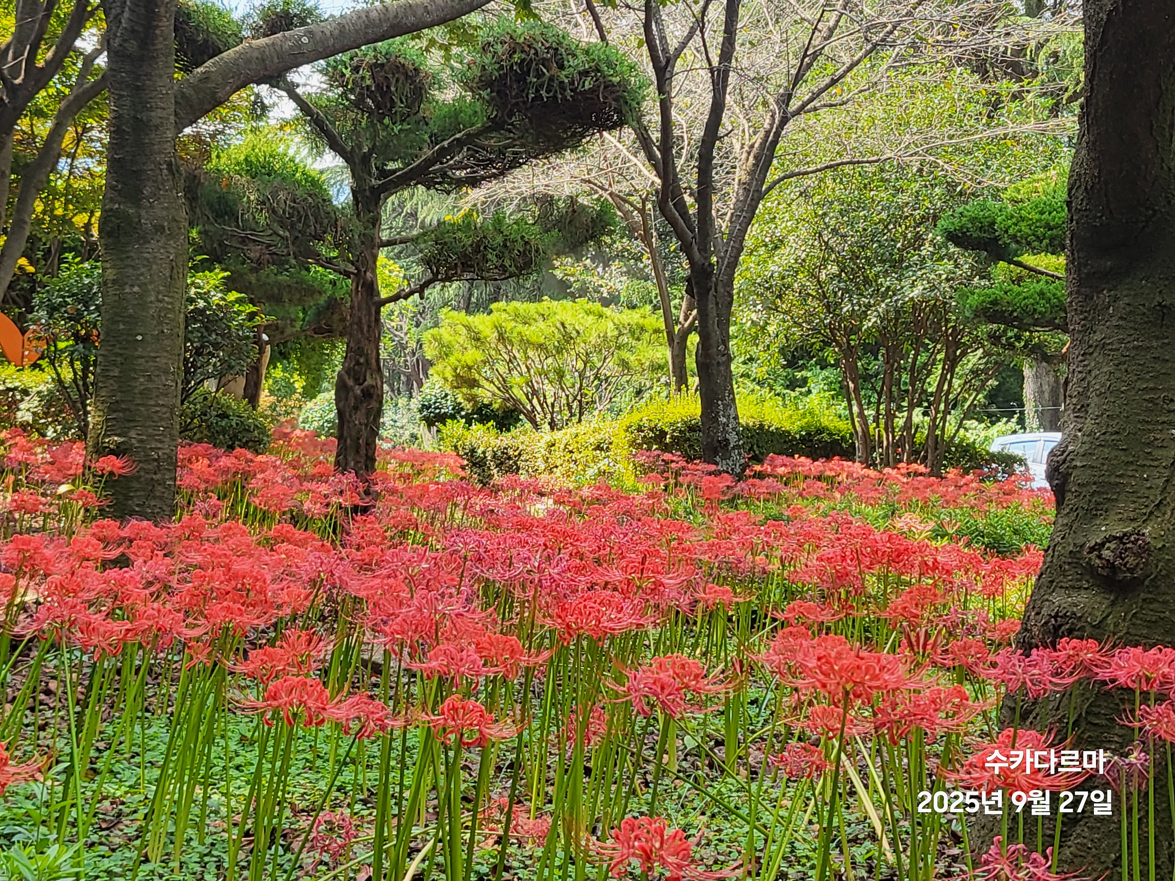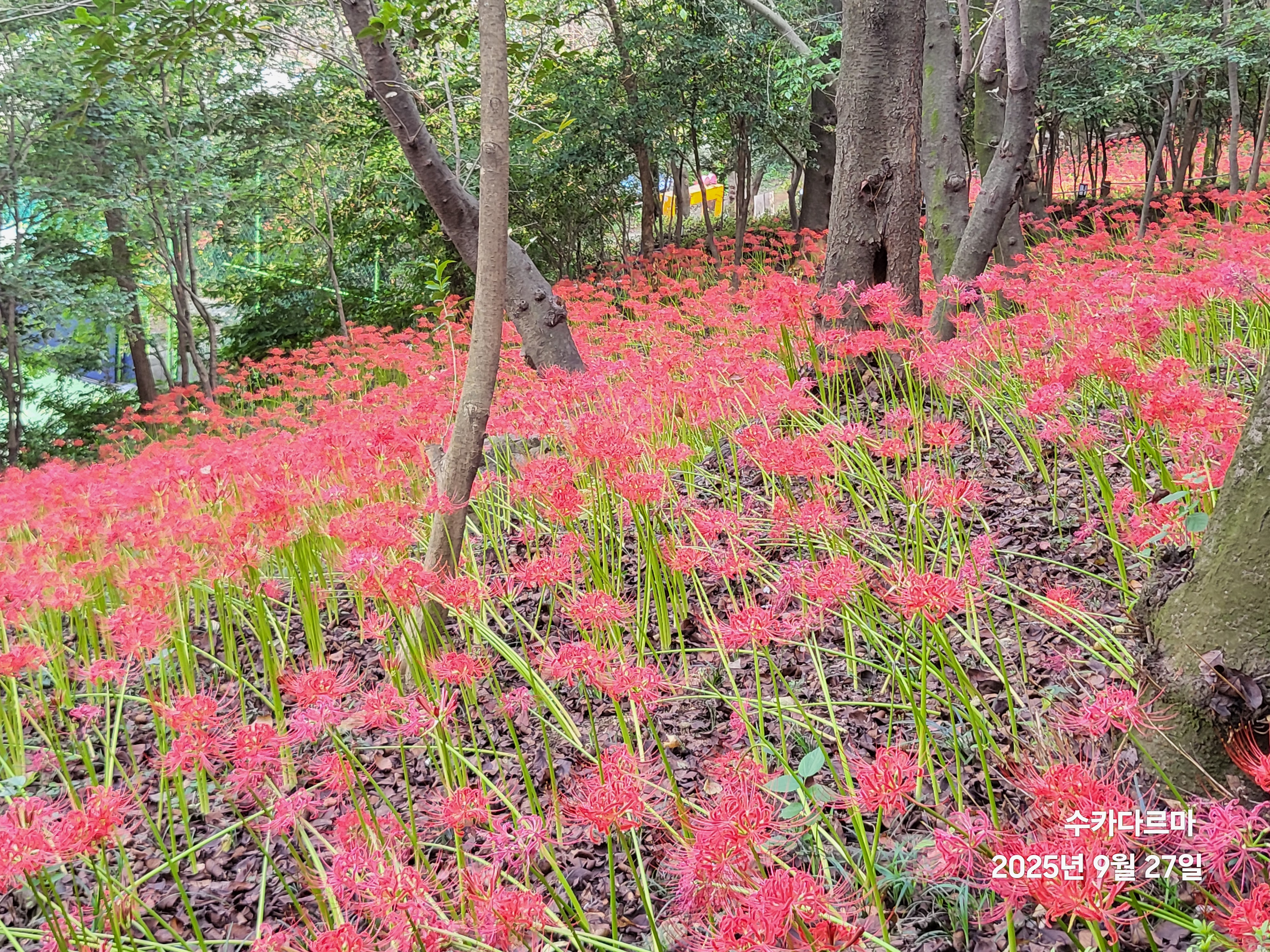 꽃무릇 향기 시비를 감싸는 산호동 꽃무릇 축제